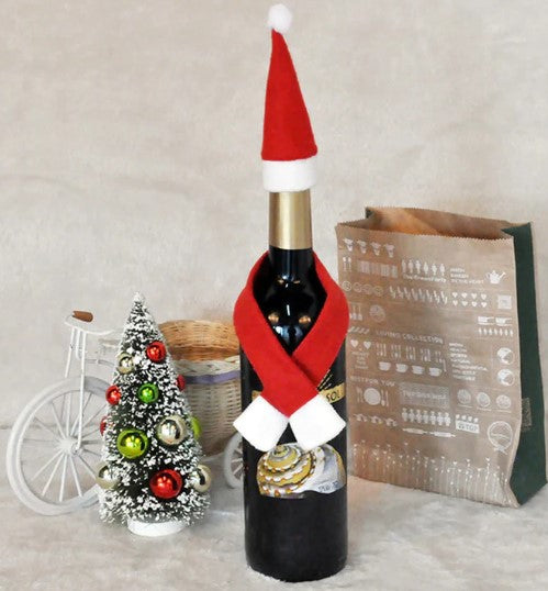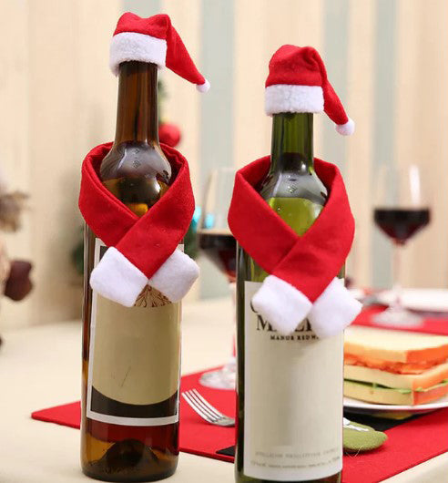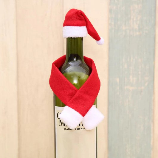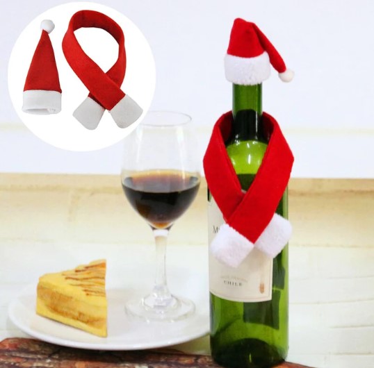 Χριστουγεννιάτικο στολίδι για μπουκάλια, με κασκόλ και καπέλο